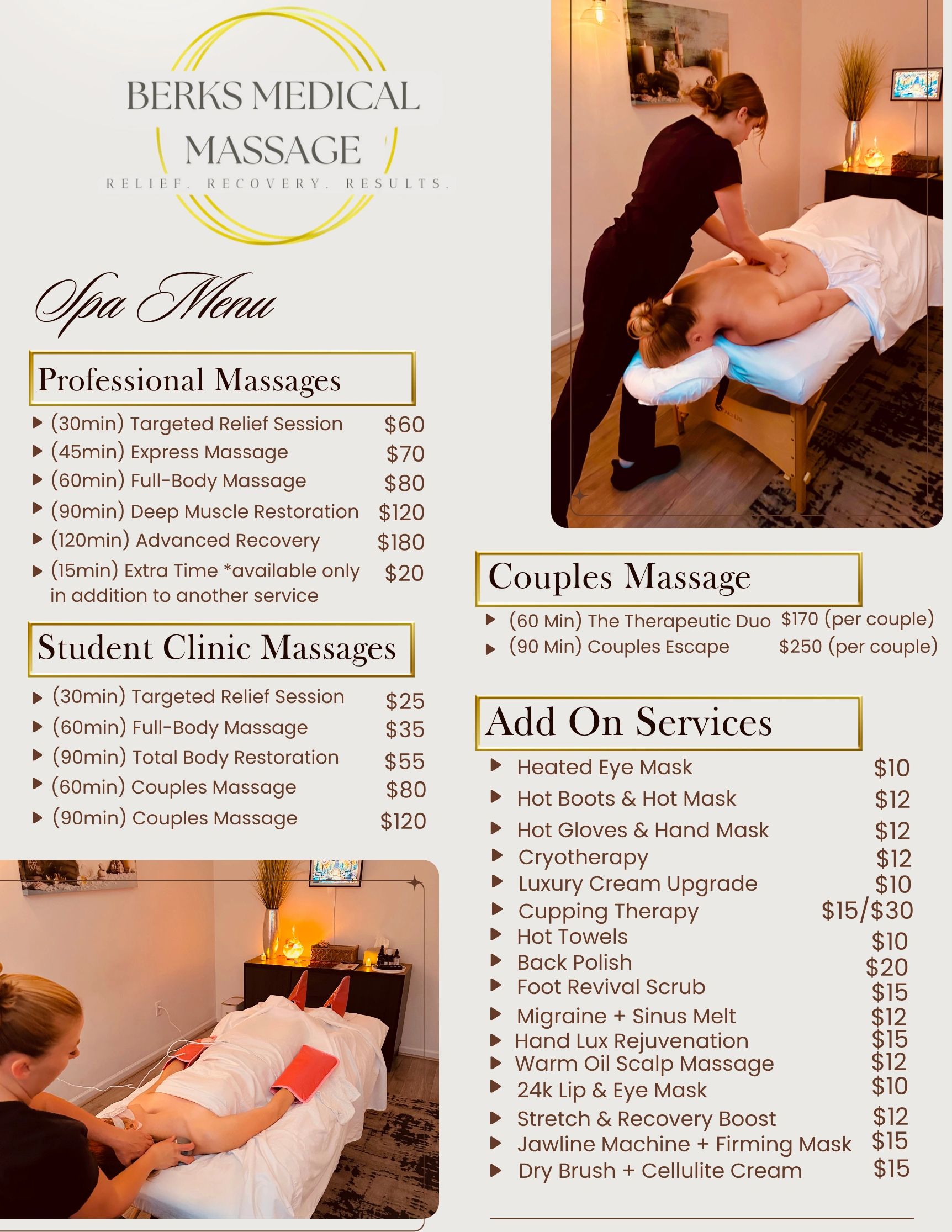 Looking for the perfect gift? Treat your loved ones to an e-gift card from Berks Medical Massage! Our e-gift cards can be used towards any of our exceptional services, from therapeutic & medical massages to rejuvenating facials. With the convenience of instant delivery, you can send your gift immediately via email.